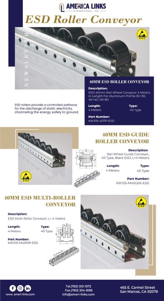 Through its booth, America Links International presented a variety of advanced solutions that captured the attention of visitors and experts. Of particular note was the presence of a complete workstation, a table with samples of some of the products we distribute, finger cradles, ESD gowns, corrugated plastic boxes, ESD tapes, aluminum profiles, tubes, rails, etc.